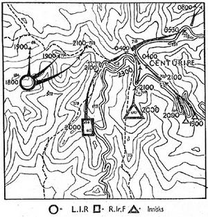 The attack on Centuripe. (Permission to share this map has been obtained from the Royal Inniskilling Fusiliers' museum)