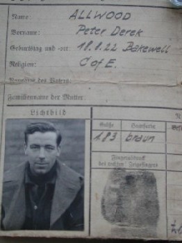 Peter Allwood. Prisoner of War card. Taken at Stalag Luft Three, Sagan, Poland, shortly after capture following being shot down on Nov 4th/5th 1944.