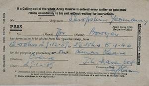 A pass I received for the purpose of Christmas leave.