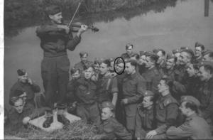 famous violinist and band leader Eugene Pini playing for his colleagues on 9th September 1941. My father is ringed.