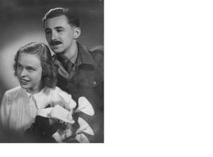 Wedding photograph of Desmond Henry and Louise Bayen, May 19, 1945, Brussels, Belgium.