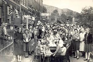 Mr Derek Gay was at this party on 8th May 1945 in Bellvue, Clifton - he was aged 7. His brother aged 10 is at the back with his group of friends. His mother, Ruby, is also in the picture - she helped with all the catering. Derek called all the ladies in the street ‘auntie’ because it was such a close knit community.