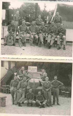 His great love was music. He took his saxaphone with him and played it when ever he had a chance for a breather. He also played the clarinet. Along with other boys from his regiment, he formed the "Blue Shadows Octet".