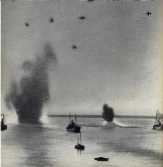 Dover Harbour 1940. An attacking aircraft can be seen in the top right.