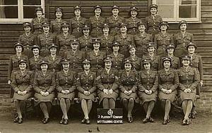W/218630 Irene Goldsmith, Pte. and other new recruits in Guildford Training Centre. Prior to being assigned to War Office work.