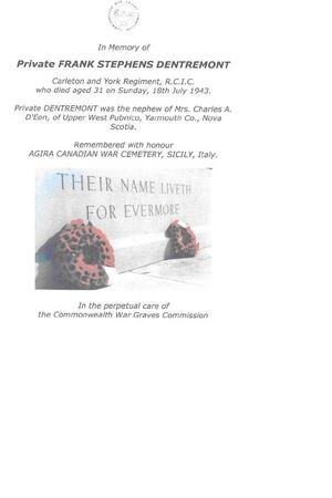 Frank Dentremont - not forgotten [The Commonwealth War Graves Commission has provided permission for printouts to be placed on this site]