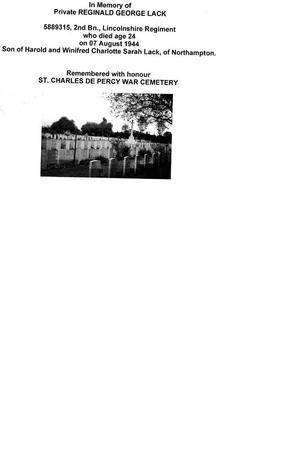 Reg Lack memorial - submitted with the permission of the Commonwealth War Graves Commission