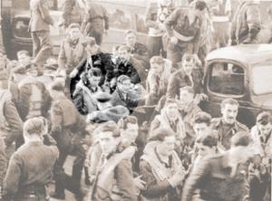 Flying Officer Blair(left) of Edinburgh and Sgt Blatch from Sutton in Surry can be seen in the centre of this image of the Spalding crews waiting for transport to the dispersal prior to a raid on Kessel, 23rd October 1943. FO Blair & Sgt Blatch are buried next to each other at Rheinberg. Crew member Lew Allinson survived bailing-out of the stricken aircraft.