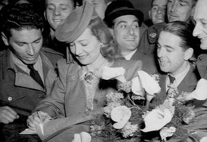 Anne Shelton forces favourite signs autographs for R.A.F. crews during one of her singing visits to our forces.