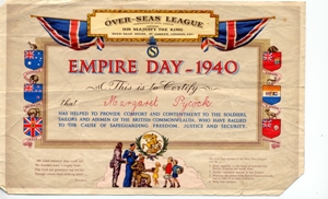 Certificate to reward Margaret Pycocks dedication to helping soldiers.