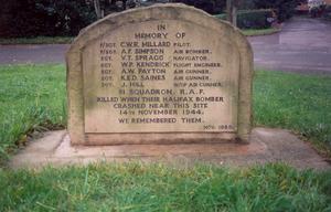 This called for a Memorial. I obtained Planning Permission, designed the Stone and commissioned a local Stonemason to carry out the work. Finally on Remembrance Sunday, 12th November 1989 (two days before the actual crash date) and 45 years later, over 250 attendees saw the beautiful, inscribed Memorial unveiled and Blessed. This was an achievement for me, and my wife who had helped me enormously. 51 Squadron R.A.F. (then at Wyton) in wartime Snaith, near Goole was well represented by the C.O and six officers. Halifax LK844 was actually on a night training exercise when it got into difficulties soon after take-off. ‘Bad weather’ was recorded as the reason for its demise and ‘Difficult to handle, some probable icing in these conditions.’