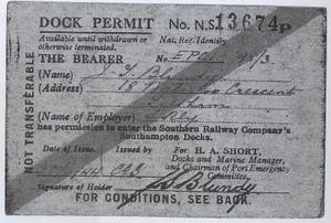 Just outside No 8 gate, on spare ground sloping down towards the sea, the Americans had built a concrete hard to load tanks and troops. These large boats were departing one after another, and then after a few weeks the flow of men and tanks got less. They then laid temporary railway tracks down the hard and started loading railway freight vehicles. These had arrived as a kit of parts in large crates and were tested and assembled on spare land at the Millbrook end of the docks and then pulled down to Number 8 gate and pushed onboard. The track had to be flexible in places to compensate for high and low tide and some derailments did occur but a crane was kept on stand-by to deal with these. The boats started coming back full of German P.O.Ws instead of being empty. They were unloaded and marched to a very large compound of huts, and barbed wire which had been used by the Allied Troops days before D-Day. There they were deloused and then loaded back onto trains to be taken to Kempton Park Race Course or Newbury Race Course under a military escort to await dispersal to proper P.O.W. camps.