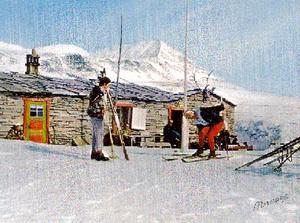 When we left there didn't seem any danger so we travelled in daylight, but were often going knee deep in snow. That night we stayed at a place near Vardhoj. A pity we could not ski, there were many pairs left there. On the next day we saw Storch spotter planes patrolling the area. We arrived at Haugesietri and took a short rest before carrying on to Breidjoriet, where we spent the night.