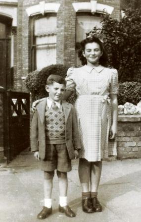 With sister Leila, outside 60 Fairholt Road, Stamford Hill, London N16, where we lived in rented rooms, about 1946