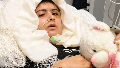 Pada salah-satu foto yang dirilis rumah sakit memperlihatkan adanya memar di bawah mata kiri Malala.