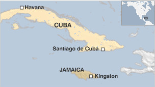 Lembaga pemantau pusat topan nasional AS, NHC yang berbasis di Miami, Florida, mengatakan serangan topan Sandy disertai angin berkecepatan hingga 175 km/ jam saat menyerang kota Santiago de Cuba.