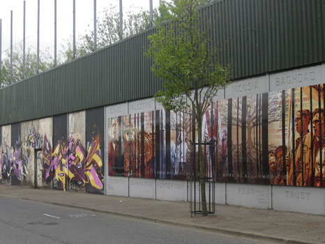 Mural, atau lukisan dinding, di beberapa rumah di Belfast merupakan salah satu peninggalan dari konflik antara kelompok Republikan yang ingin memisahkan diri dan Unionis yang ingin bergabung dengan Inggris Raya.