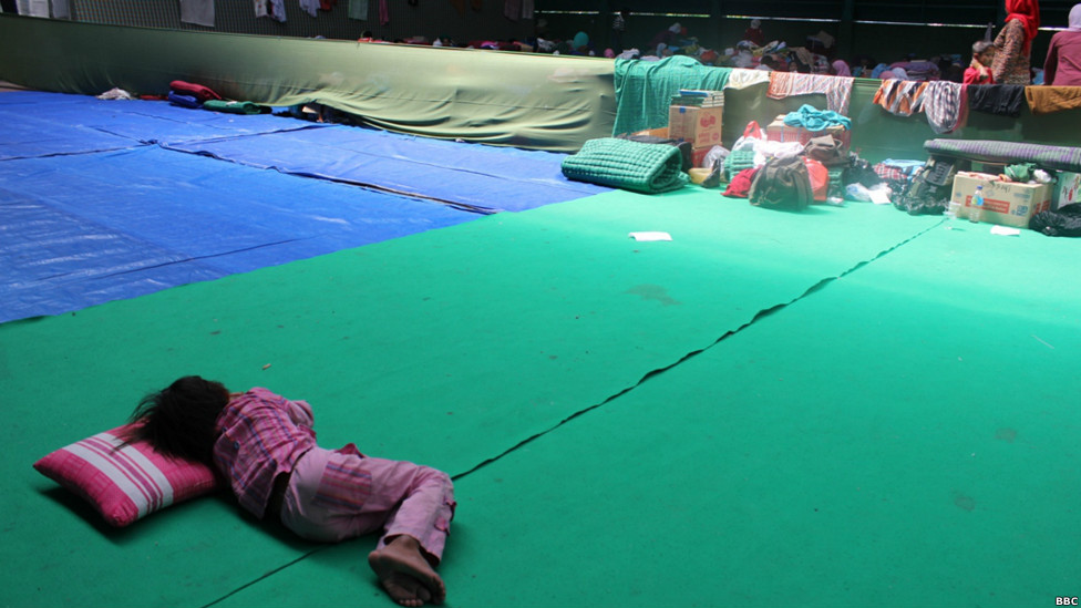 Bermandikan cahaya matahari, pengungsi warga Islam Syiah menempati ruangan seukuran delapan kali lapangan futsal. Sampai awal September, mereka istirahat dan tidur di hamparan karpet dan kasur tipis.