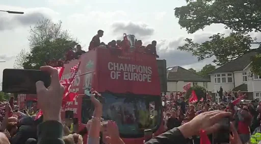Arak-arakan bus dengan atap terbuka dimulai di Allerton Maze dan berakhir dekat tepi laut. Bus yang mengangkut para pemain dan staf Liverpool bergerak lambat di tengah lautan orang berkaus merah.
