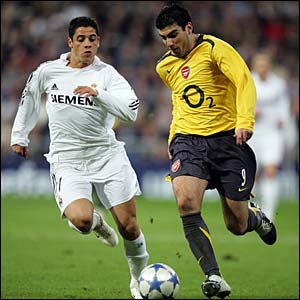 Real Madrid 0-1 Arsenal: Jose Antonio Reyes berusaha mempergunakan kesempatan bagi Arsenal.