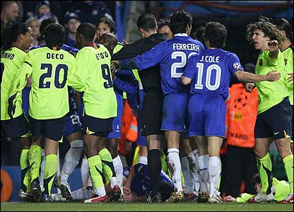 Chelsea 1-2 Barcelona: Chelsea bermain dengan 10 orang setelah bek Asier del Horno diusir keluar lapangan oleh wasit dalam keputusan kontroversial setelah beradu dengan Lionel Messi.