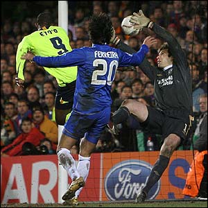 Tendangan bebas Ronaldino menghantam gawang Chelsea dan John Terry yang berusaha menghalau bola tidak sengaja mengolkannya ke gawang sendiri sehingga kedudukan imbang 1-1.