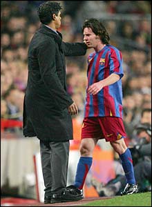 Salah satu pemain andalan Barcelona asal Argentina, Lionel Messi, berjalan tertatih-tatih karena cedera kaki setelah babak pertama berakhir tanpa gol.