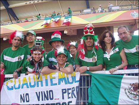 Tradición familiar. Arturo Jasqui de México, siempre comparte las emociones del fútbol con su familia. Tuvo la oportunidad de llevarlos a seguir el "Tri" hace cuatro años en el Mundial 2006 de Alemania y aquí celebran durante el partido contra Irán.