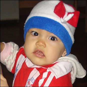 "Soy Milagros Luján, tengo 10 meses, con tan corta edad ya vibro con mis papis los partidos de la selección paraguaya", dice la tierna albirrojita.