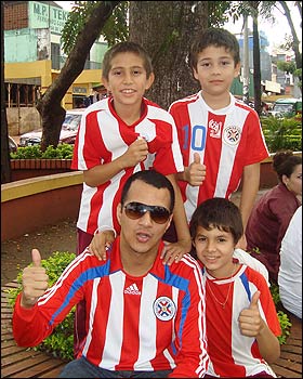 Raúl, Santi y Marcelo no se quitan sus camisetas, hasta en pijama las llevan para animar a su equipo. "¡Paraguay campeón!" es lo que más se escucha en casa estos días, dice el papá.