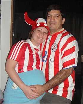 Aún no han llegado a este mundo, y dice Gizella que sus mellizos, Franco y Giovanni, ya están animando a su "querida selección de Paraguay".