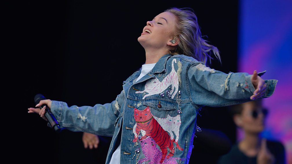 Zara Larsson here, owning the main stage in red boxing boots and an oversized denim jacket emblazoned with cartoon cats. Mee-ow!