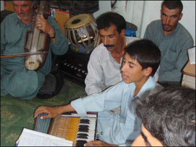 بهرام هارمونيه می نوازد و فرحناز آهنگ می خواند، اما بهرام به نواختن هارمونيه چندان بلد نيست. فرحناز می گويد: نواختن هارمونيه کار آسان نيست. در اين هنگام خاله گادی ران رسيده با اطفال سلام عليکی می کند. بهرام در مورد کوشش شان جهت ياد گيری هارمونيه می گويند. خاله گاديران از پسری ياد می کند که خوب هارمونيه می نوازد. او اطفال را با خود به نزد همان پسر می برد. فرحناز نام پسر را می پرسد، خاله گاديران می گويد: نامش احمدضيا است، ١٢سال دارد. وی در آشيانه موسيقی می آموزد، که در شهر نو کابل موقعيت دارد. سرانجام گادی به سر منزل مقصود می رسد. خاله گاديران اطفال را در صنف احمد ضيا می برد که مصروف نواختن هارمونيه است. پس از سلام عليکی فرحناز از احمد ضيا می پرسد چطور به نواختن هارمونيه علاقه گرفت؟ ضيا می گويد : "از گذشته های دور به نواختن هارمونيه علاقه فراوان داشتم ، وقتی به محافل عروسی می رفتم، می ديدم هنر مندان هارمونيه می نوازند.