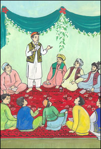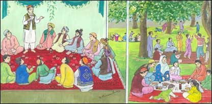ميرويس او ښايسته د جادويي ماڼۍ د لوړوالي؛ په بيلابيلو پوړونو کې دڅنګ تر څنګ بې شمېره دريڅو دشته والي؛ دبڼ د شينوالي او رنګارنګ ګلونو؛ له ګلانو څخه له ډکو ونو؛دراز،رازمرغيواو د ټولوهغو شيانو چې ماڼۍ ته يې لاډېره ښـکلا ورپه برخه کړې ده ستاينه کوي. په خبرو ،خبرو کې دواړه هغه ځاى ته رسيږي چې لالوماما (دقصر ټوکمار) يوې کليوالي سندرې ته غوږ نيولې او په خواکې يې د ماڼۍ دګلانوپالنه هم کوي. لالو ماما وروسته تر روغبړميلمانه دماڼۍ داخل ته بيايي. د ماڼۍ په حويلۍ کې دونوګلان او تازه والى ميرويس ته موسمي ميلې ورپه زړه کوي.ښايسته د موسمي ميلو په هکله پوښتي. لالو ماما په ډيره خوښۍ دخپل يادموسمي ميلو په هکله ميلمنوته څه ناڅه مالومات ورکوي. ميرويس او ښايسته داسې د لالو ماما په کيسو کې غرق تلي ته به وايي چې همدا اوس د هماغې زمانې په ميلو کې ورسره شريک دي. کله چې د موسمي ميلو په هکله د لالو ماما خوږې خبرې پاى ته رسيږي،ښاسته ارمان کوي چې کاشکې هغې کولاى شواى يوځل يې په دا شان مېلو کې برخه اخيستې واى. لالو ماما د ميلمنو دزياتې خوښۍ او په دې برخه کې دزياتو مالوماتو د ترلاسه کولو لپاره يوه دريڅه پرانيزي.