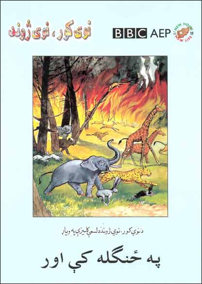 "په ځنگله کې اور" يوه افغاني فولکلوريکه کيسه ده چې په لوستونکي کې د وياړ يو تاثير رامنځ ته کوي. دا کيسه موږ ته راښيي چې د قوي ارادې او تکل په لرلو سره کولاى شو پر ستونزو بريالي شو، څرنگه چې لويانو ويلي: تصميم دبري لومړى شرط دى! د ځنگله حيواناتو کيسې ته زړه وړونکې ښکلا وربښلې. دا کيسه ميږى چې جسماً ضعيف مگر روحاً غښتلى او مصمم دى د سر مشق او دالهام د يوې چينې په توگه د فيل، زمري، گوره خر او د ځنگله د نورو حيواناتو په وړاندې ښيي. موږ دکتاب په پاى کې يولړپوښتنې زياتې کړي چې هيله لرو له گرانولوستونکو سره دکيسې په پوهيدو او دهغې دپيغام په رسولو کې مرسته وکړي. دا کيسه زموږ ليکوالې شريفې پاڅون دنوي کور، نوي ژوند ډرامې ته راوړې او په ډرامه کې بس بي بي د بر کلي ماشومانو ته کړې ده. هيله ده چې کيسه تاسوته په زړه پورې وي.