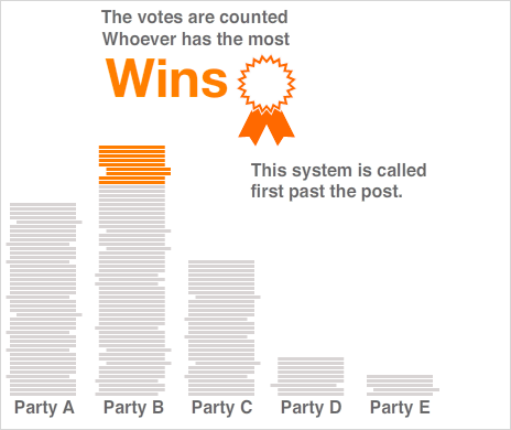 Under first-past-the-post, the candidate who gets the most votes in their constituency is elected as the MP.