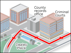 He asked me were I was standing and I told him. So we walked back over there and waited for the traffic to clear before we crossed the street and Buddy Walthers said, "Look! What's that mark on the kerb?" You could see it through three lanes of traffic. We went over there, looked at the mark and eyeballed where it might have come from. It came from the direction of the Schoolbook Depository. I learnt later that other people had seen debris fly up as the bullet hit the kerb. Prime suspect I went onto Dallas police station and they sent me to Homicide. I sat there for 30 or 40 minutes. A detective named Gus Rose came in and started taking my statement. We were about through with giving the statement when there was a commotion. A couple of policemen brought a guy in handcuffs in. Detective Rose asked, "Who is that guy?" And a policeman said, "This is the man who killed a policeman over in Oak Cliff section of Dallas." That night on TV they showed Oswald and that was they same guy they'd brought in. Cover-up He passed within three feet of me. There were glassed-in cubicles and they put him in the cubicle right next to me. I could have touched him if the glass hadn't been there. I do not know why the FBI tried to cover up the missed shot. The only thing I can think of was that Hoover [the head of the FBI] in his report to President Johnson a few days after the assassination said the first shot hit Kennedy, the second hit Connally and the third hit Kennedy in the head. If you go back and talk to some of the old FBI agents they will tell you that you didn't question Hoover. If he said something, that was it. If you look at the Zapruder film when Kennedy is hit in the head there's a slight move forwards and then a violent move backwards. His head moves so violently back it throws his shoulders into his seat. And of course you see his head does explode.