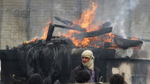 مظاهره کوونکو له پولیسو سره اخ و ډب وکړ او ځینو ګاډو ته یې اور ورته کړ.