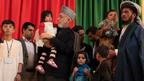 • افغان ولسمشر حامد کرزي فاریاب ته په خپل سفر کې په میمنې ښار کې د تېرې جمعې ورځې (اکتوبر/۲۶ مې) په ځانمرګې برید کې د وژل شویو کسانو له کورنیو او خپلوانو سره خپله خواخوږي څرګنده کړه. عکسونه: کابل کې د ولسمشرۍ دفتر نه په مننې.