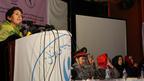 • دغو ښځو د مدني ټولنې د کنفرانس د تالار پر دېوالونو د لسګونه قرباني شویو ښځو عکسونه ځړولي وو.