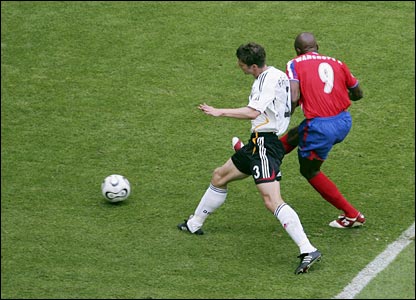 د کوربه هيواد جرمني تر رنگارنگو پرانيستونکو نندارو وروسته له کوستاريکا سره د بريد په برخه کې ښه لوبه وکړه. د جرمني گول وهونکي کلاوس د خپل هيواد له څلورو گولونو څخه دويم او دريم وکړ . جرمني دغه لوبه ٤-٢ وگټله خو دوه گولونه يې داسې وخوړل چې که د هر هيواد تيز ځغستونکي ورسره مخامخ شي ښايي د دوى له دغه ضعفه لا ډيره گټه واخلي.