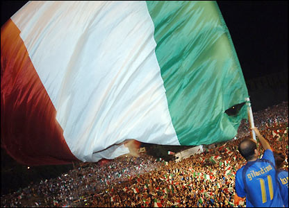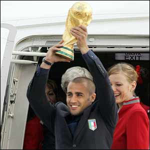 د ايټاليا ملي فوټبال لوبډله هيواد ته په ستنيدو د سلگونو زرو مينه والو له تاودۀ هرکلي سره مخامخ شوه . ايټاليايي فوټبال لوبډلې په جرمني کې د ٢٠٠٦ کال نړيوالې اتلولۍ فرانسې ته په ماتې ورکولو د يکشنبې په ورځ ( د جولاى ٩ د چنگاښ ١٨ ) وگټلې .