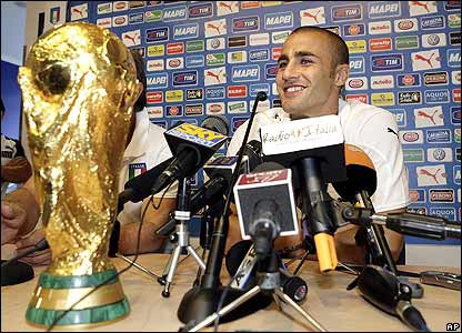 د ايټاليا کپتان کانورا چې د ٢٠٠٦ کال اتلوليو تر ټولو پياوړى مدافعې لوبغاړى پېژندل شوى کور ته تر ستنيدو وړاندې په جرمني کې د اتلولۍ له کپ سره وروستي خبري کانفرانس ته په ورين تندي خبرې وکړې