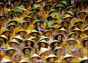 وطن پالو استرالياييانو د لوبو لپاره خپل ملي رنگونه کارولي و ، چا مخونه په خپل بيرغ ځلولي و او چا نوې خولۍ په سر کړې وې