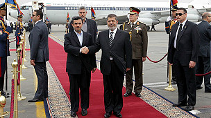 مصري ولسمشر محمد مرسي د قاهرې پر هوايي ډګر د ولسمشر احمدي نژاد هرکلي ته ورغلی و.