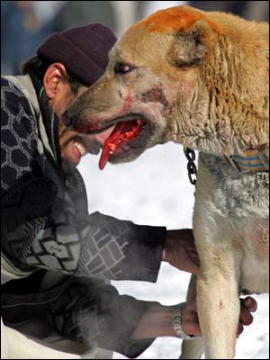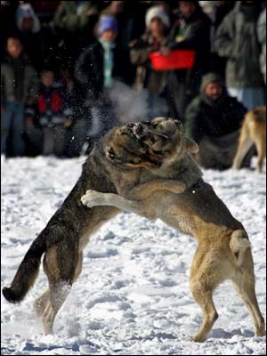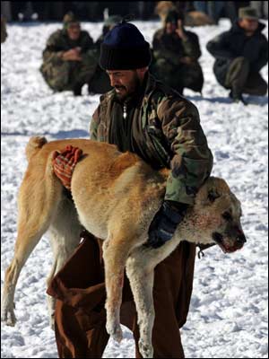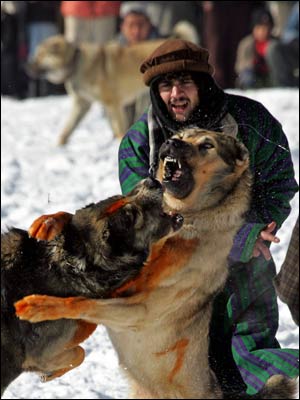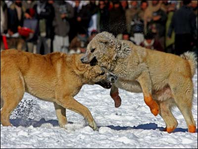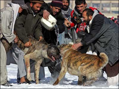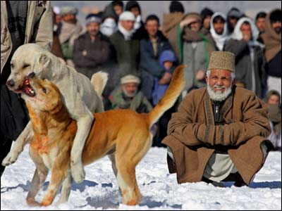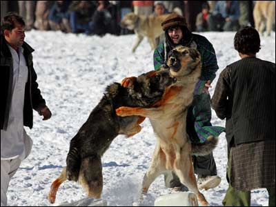 شمار زيادی از مردم کابل، در يک جمعه سرد زمستانی، 16 جدی (6 ژانويه)، در 'چمن ببرک' گرد آمدند تا به تماشای سگ جنگی و شرط بندی بر سر آن بپردازند. سگ جنگی، خروس جنگی، کبک جنگی و امثال آن، در بسياری از کشورها، از جمله بريتانيا ممنوع است، اما در افغانستان، از تفريحات مردم در روزهای تعطيل و اوقات فراغت به شمار می رود. اين نوع تفريحات، در زمان طالبان نيز در افغانستان ممنوع بود.