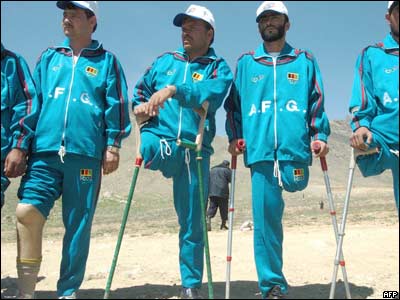 تيم فوتبال معلولان افغانستان، در مراسم روز جهانی مبارزه با مين شرکت کرده اند