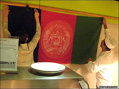 سراسر رستوران بی بی سی با پرچم های افغانستان تزئين شده بود