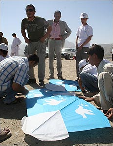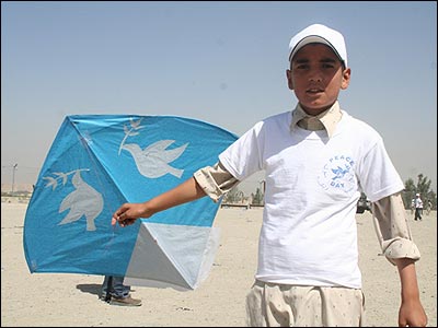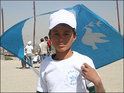 ده ها کودک خیابانی در کابل، به استقبال از روز جهانی صلح، کاغذپران های (بادبادک) آبی رنگ خود را به هوا فرستادند. براساس درخواست سازمان ملل متحد، انتظار می رود فردا (جمعه، ۲۱ سپتامبر) تمامی گروه های درگیر در جنگ افغانستان، این روز را به عنوان "روز بدون جنگ" بپذیرند. این درخواست با استقبال دولت افغانستان و گروه طالبان روبرو شده اما هر دو جانب گفته اند که اگر مورد حمله قرار گرفتند، از خود دفاع خواهند کرد. سازمان ملل متحد می گوید، پذیرفتن یک روز بدون جنگ از سوی گروه طالبان و نیروهای داخلی و خارجی مستقر در افغانستان، اگرچه زمان زیادی نیست اما "مهم این است که اهمیت صلح درک شود."