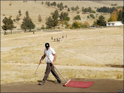 گلف در افغانستان ورزش فراگیری نیست. در این کشور، به ندرت می توان زمین مناسب برای انجام این ورزش پیدا کرد. اما در کنار تفریحگاه معروف قرغه در شمال کابل، زمینی به این منظوردر نظر گرفته شده که روزهای پایان هفته پذیرای علاقه مندان گلف است. تقریبا تمام مراجعه کنندگان به این زمین را، شهروندان خارجی مقیم کابل تشکیل می دهند. چمن این زمین هنوز آماده نشده و علاقه مندان ورزش گلف، از سطح هموار و چمن مصنوعی به این منظور استفاده می کنند.